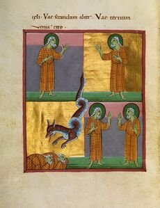 11세기 채색 사본인 밤베르크 묵시록(Bamberg Apocalypse)에 묘사된 두 증인