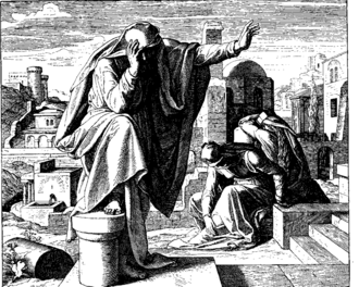 - (애 1:1) 슬프다 이 성이여 전에는 사람들이 많더니 이제는 어찌 그리 적막하게 앉았는고 전에는 열국 중에 크던 자가 이제는 과부 같이 되었고 전에는 열방 중에 공주였던 자가 이제는 강제 노동을 하는 자가 되었도다