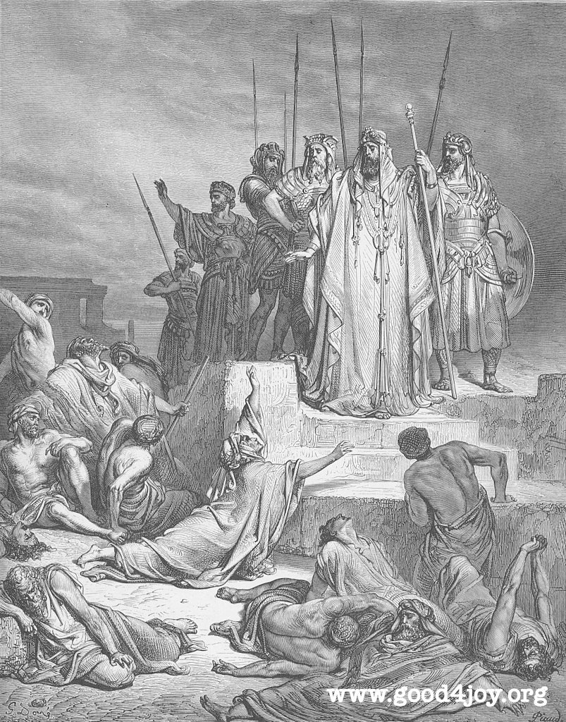 (사마리아의 기근 [[열왕기하|(왕하 6:24-7:20)] * https://en.wikipedia.org/wiki/Elisha#/media/File:096.A_Famine_in_Samaria.jpg * 저작권: 퍼블릭 도메인)